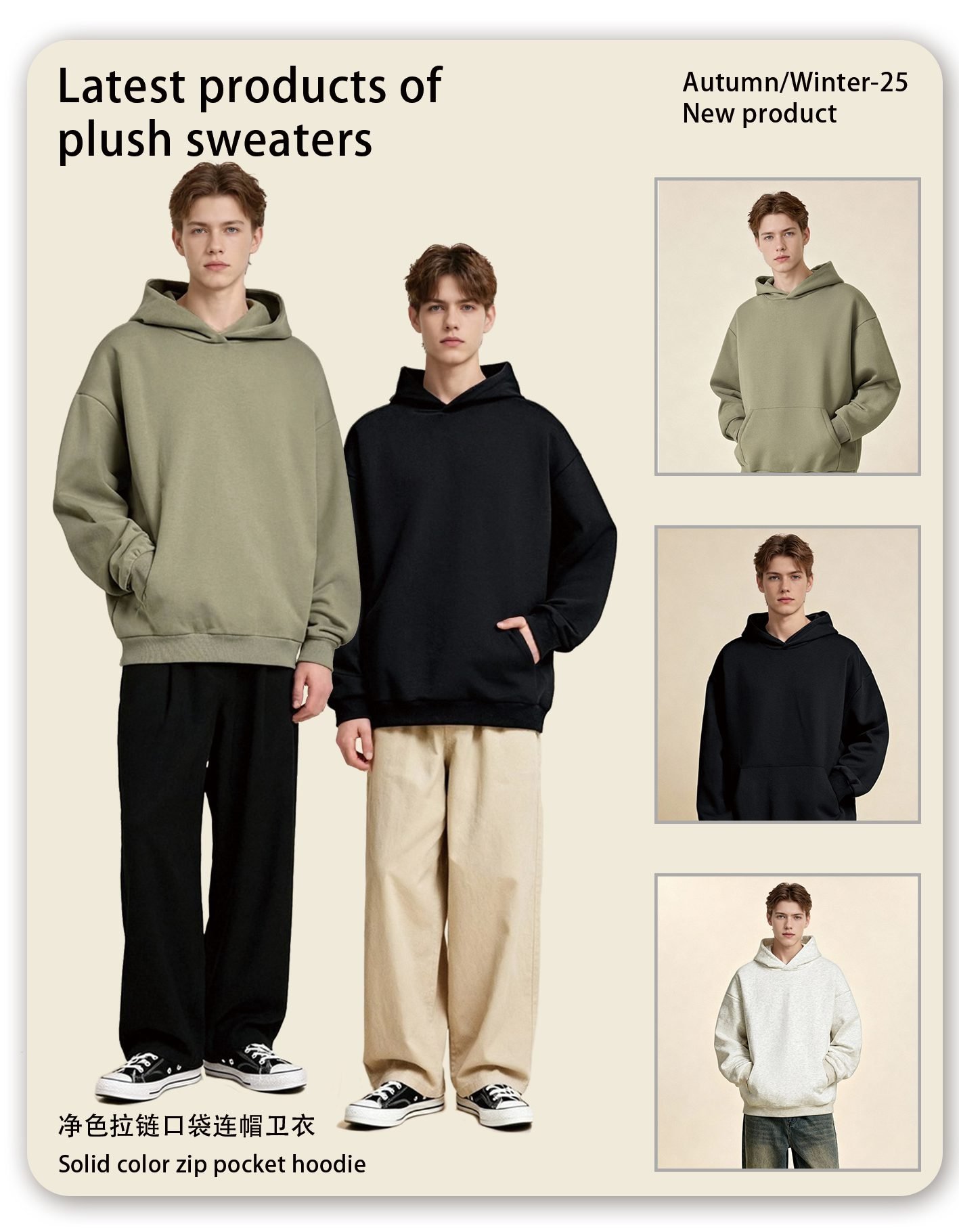 Introducing the Revolutionary Hidden Zip Hoodie 2025 (Style A_M2419)Elevate your collection with a design-forward essential. The Hidden Zip Hoodie 2025, style A_M2419, combines style and function with its standout invisible zipper design. This creates a clean, streamlined look while offering easy wear. Crafted from a comfortable 345gsm brushed fleece, it provides plush warmth for the cooler seasons.This hoodie is designed for modern comfort. The hidden zipper adds a premium, minimalist detail, while the relaxed fit ensures easy movement and a contemporary silhouette. It’s a versatile piece that works for both casual and sporty aesthetics.The Hidden Zip Hoodie 2025 is offered in a curated selection of 4 versatile, neutral colors: Black, Grey Camel, Oyster Grey, and Oatmeal Grey. This focused palette provides sophisticated options for a cohesive wholesale range.Stock this unique blank (A_M2419) to add a designer touch to your offerings. Its clean look is an excellent base for minimalist branding or standalone sales. Order the revolutionary Hidden Zip Hoodie 2025 in bulk for a stylish, functional inventory staple.