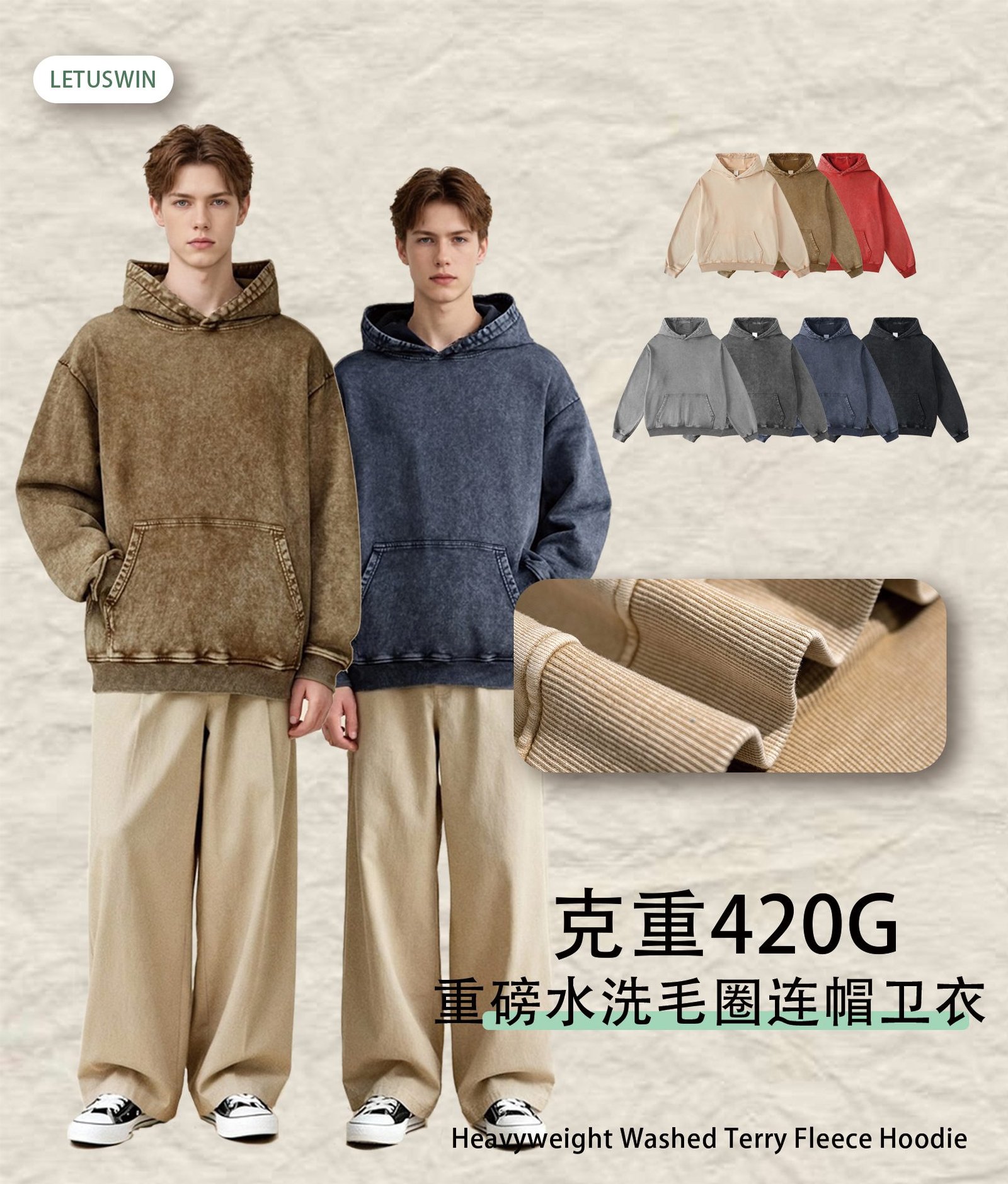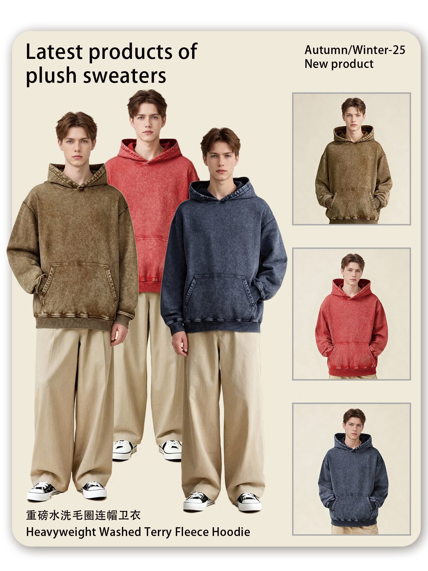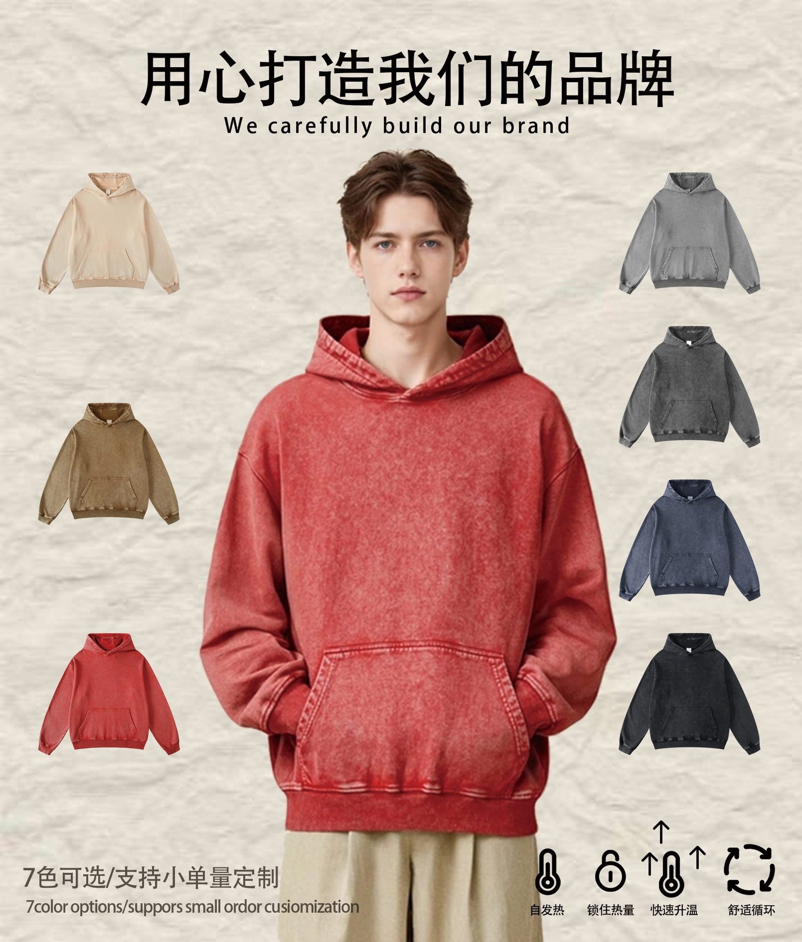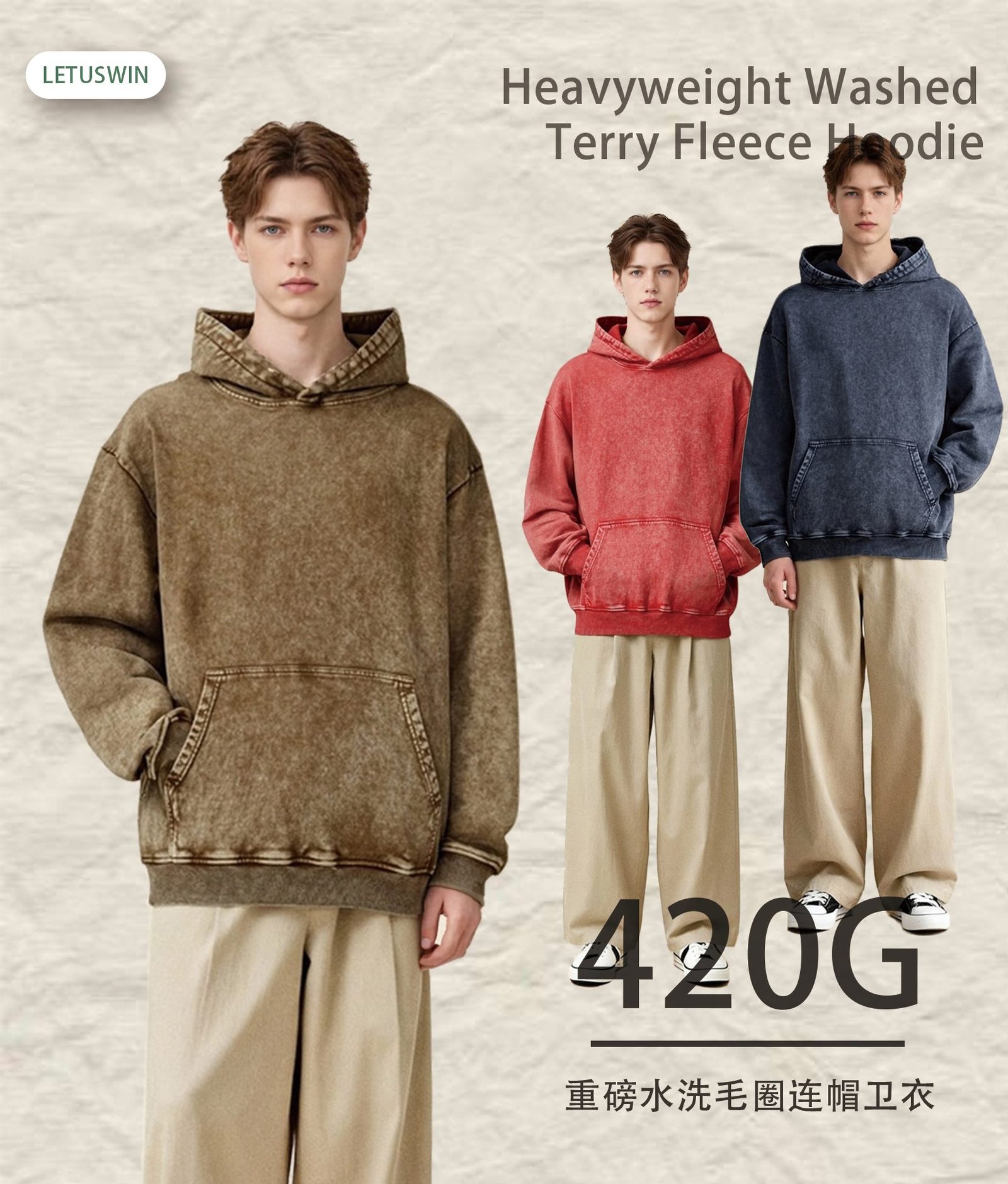 Introducing the Standout Wax-Dye Hoodie 2025 (Style A_M0211)Make a statement with the standout Wax-Dye Hoodie 2025. This unique piece, style A_M0211, features an authentic vintage wax-dyeing process that creates rich, uneven color variations and a one-of-a-kind textured look. Crafted from a premium 420gsm heavyweight fleece, it offers substantial comfort and a distinctive, artistic aesthetic.The special dyeing technique gives each garment a unique, lived-in character, aligning perfectly with raw streetwear and vintage-inspired trends. Its relaxed, comfortable fit ensures broad appeal and wearability.This Wax-Dye Hoodie 2025 is available in 7 curated colorways. The palette includes deep tones like Navy, Brown, and Khaki, complemented by unique finishes like the “Snow Wash” effect, offering a range of stylish options for your collection.Stock this fashion-forward blank (A_M0211) to differentiate your wholesale offerings. Its unique base is perfect for brands seeking a distinctive look. Order the standout Wax-Dye Hoodie 2025 in bulk to add an artistic edge to your inventory.